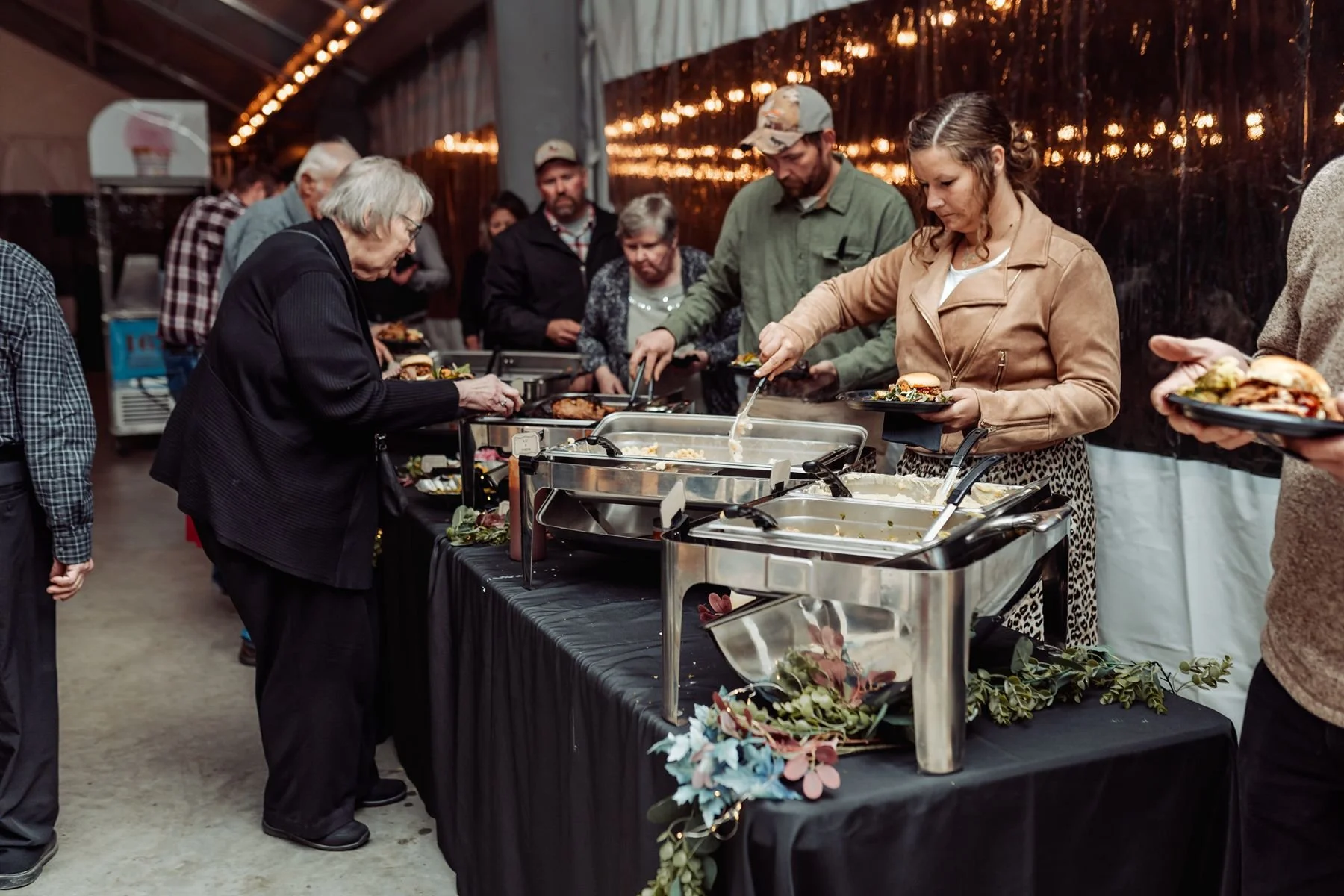 The groom shared a brief welcome, followed by a prayer from the bride’s father. Kellie then began dismissing tables for a delicious buffet dinner from D’s Smokehouse.