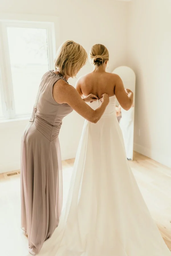 Since the wedding party was getting ready off-site, we drove the groom’s boutonniere over and helped pin it on. We usually make sure to check in on our couples when we arrive, so it felt a little unusual not seeing Hannah all morning!